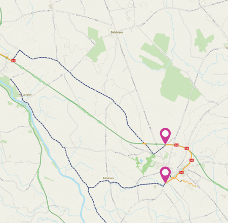 However, as much of it was on busy roads, it is now two separate sections of urban cycling in the town of Ballymoney and the university town of Coleraine.