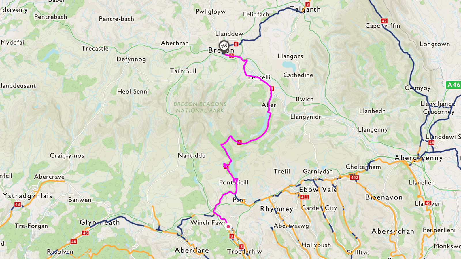 This route is for those who would like to get into the heart of the Brecon Beacons National Park, but it starts from possibly the most famous of South Wales’ former mining towns, ending in the picturesque rural town of Brecon.
