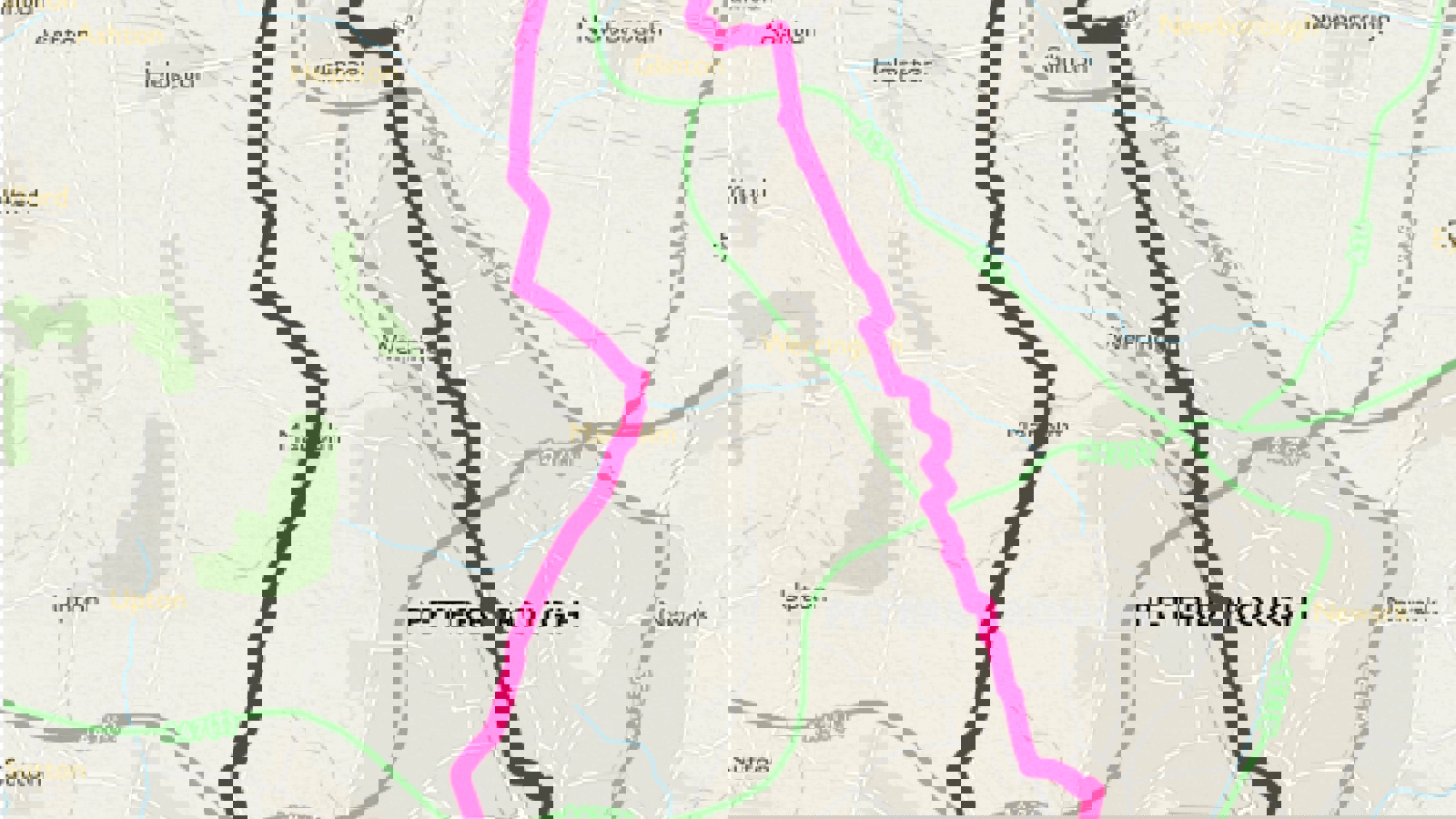 The section described here runs west from the city-centre along the River Nene, to Ferry Meadows Country Park and through the villages of Marholm and Etton before returning to Peterborough city centre and uses a mixture of traffic-free paths, quiet roads and urban cycle lanes. The section which follows the riverside path from the city-centre to the western end of Ferry Meadows Country Park is particularly suitable for novice cyclists and young children as it is flat and traffic-free.