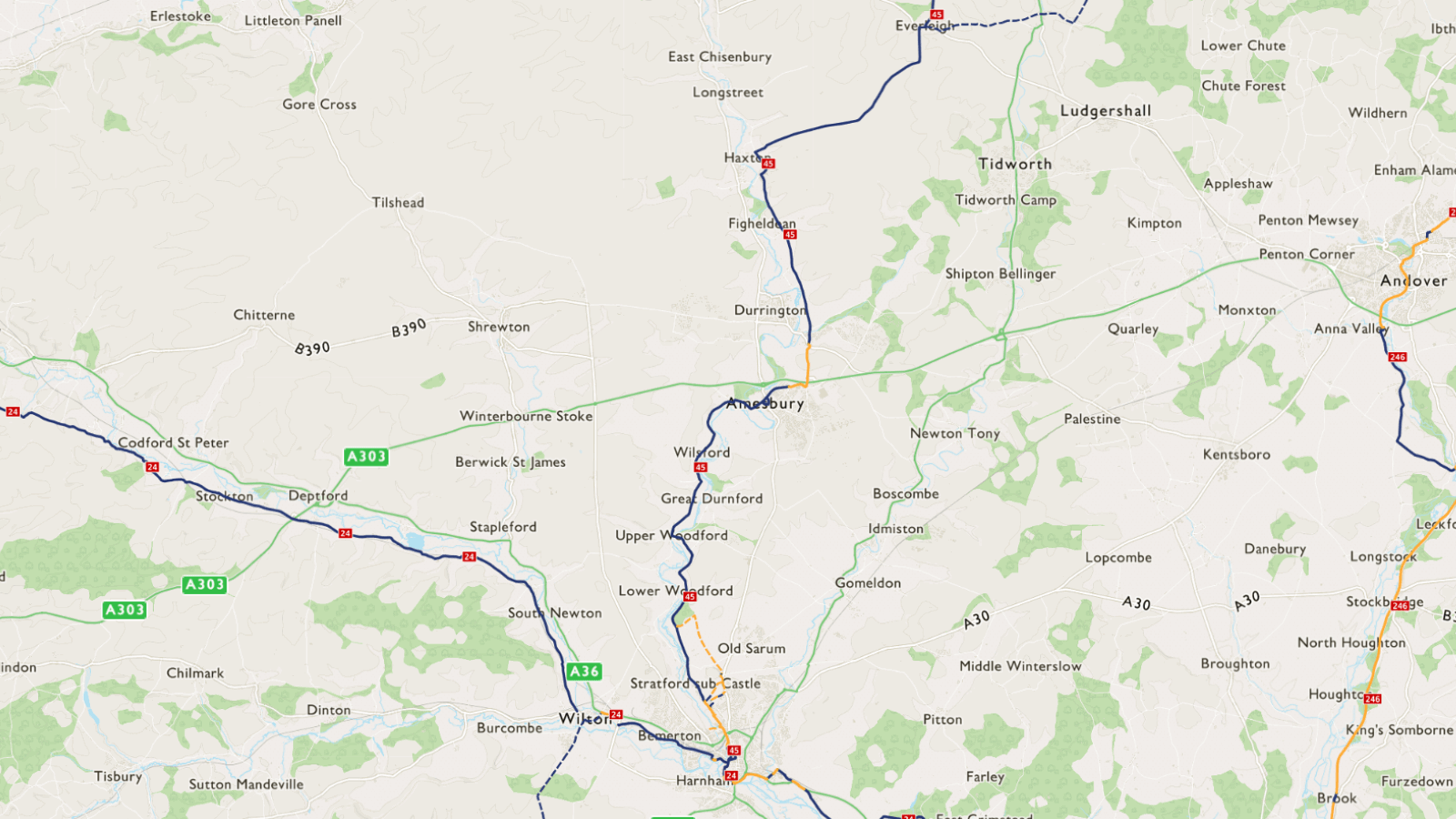 Through Wiltshire, Route 45 links Swindon to Salisbury via the World Heritage site at Avebury where you will find some of the greatest marvels of prehistoric Britain. Avebury henge and stone circles were built during the Neolithic period, roughly between 2850 BC and 2200 BC. At Avebury you’ll find the largest stone circle in Britain which also encloses two smaller stone circles.