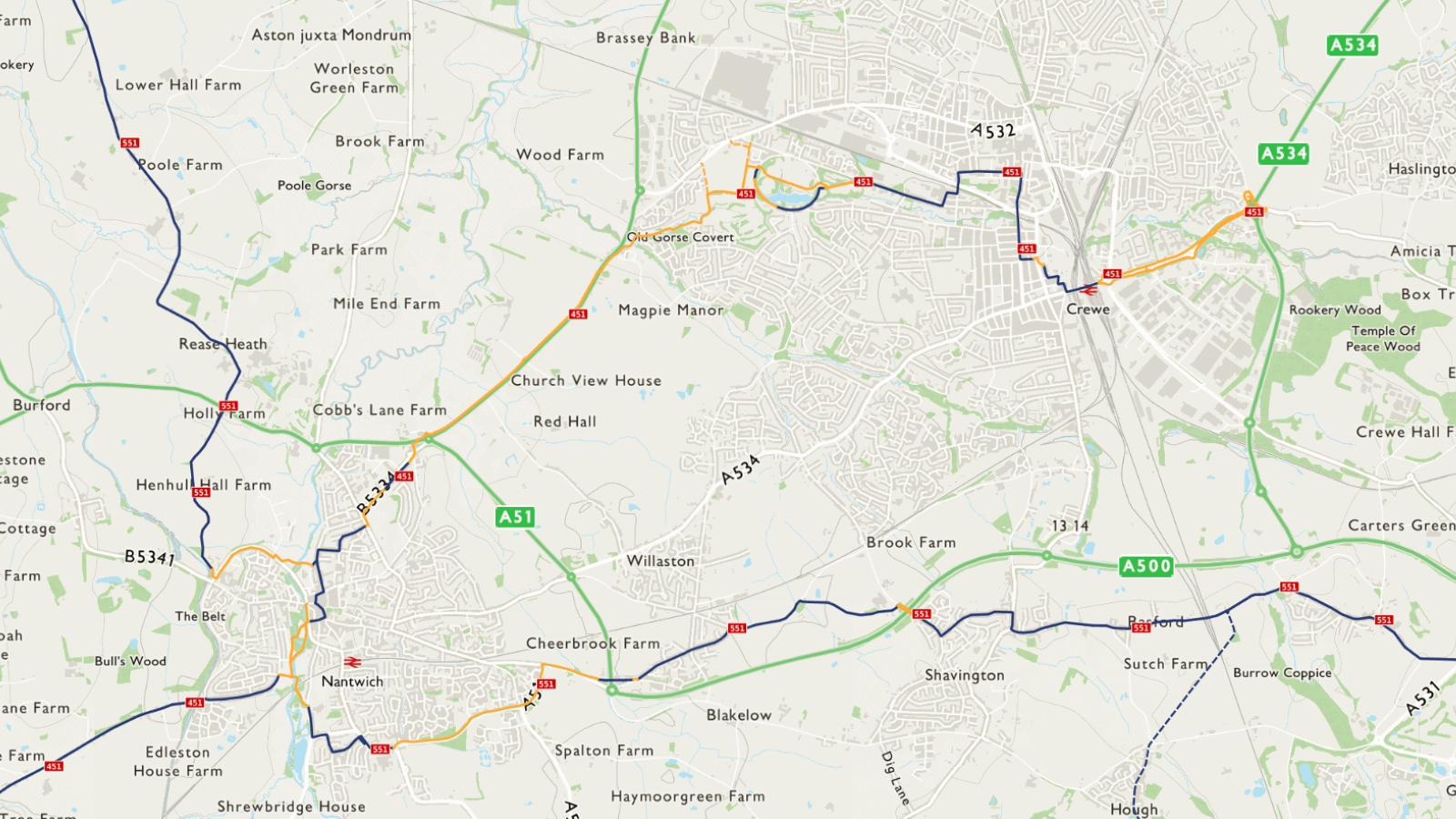 The route is a direct, ‘green corridor’ which runs parallel to the busy A530 'Middlewich Road' and links directly to some of the major employers in the north-west of Crewe including Leighton Hospital and Bentley Motors.