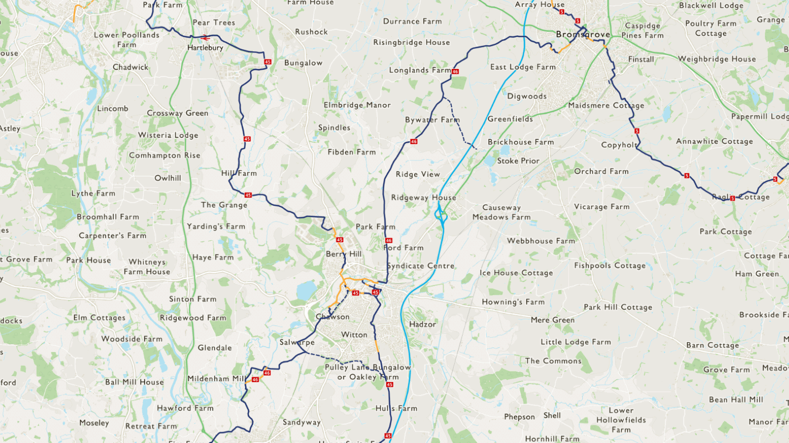 Between Worcester and Hereford, the route is still under development.