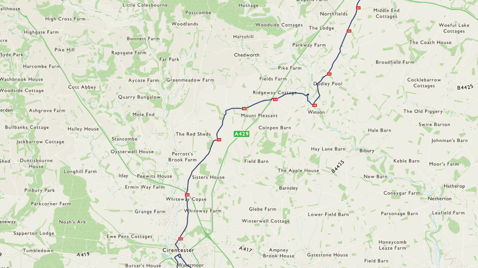 Route 48 runs from Tetbury and Cirencester to Northleach, Moreton-in-Marsh and Southam. There you can join with Route 41, which takes you into Royal Leamington Spa.