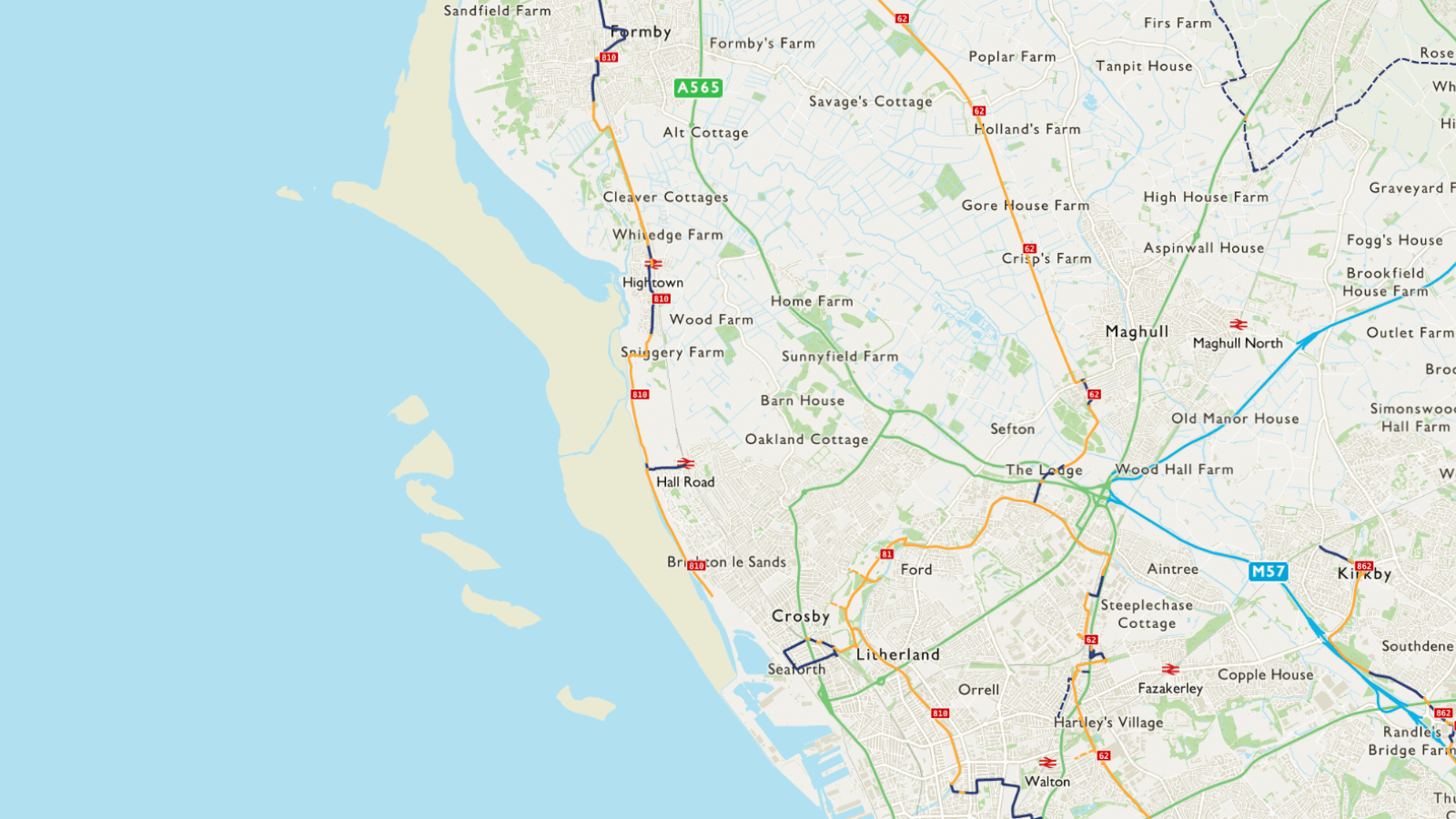 The route also passes through Formby and close to a National Trust site on the coast, with a glorious beach and dramatic sand dunes.
