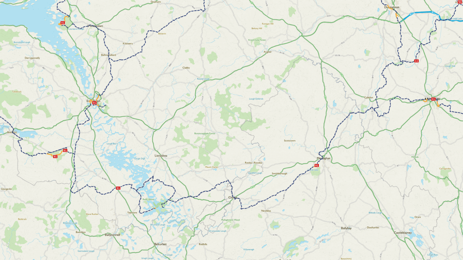 National Route 91 runs in sections by Armagh, Lower Lough Erne and Enniskillen