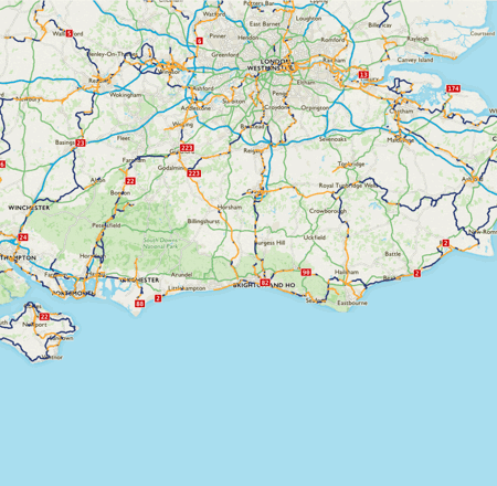 There are some gaps in National Network Route 2 between Chichester and Bognor, and from Littlehampton to Goring-by-Sea, but there are suggested alternative routes for these sections.