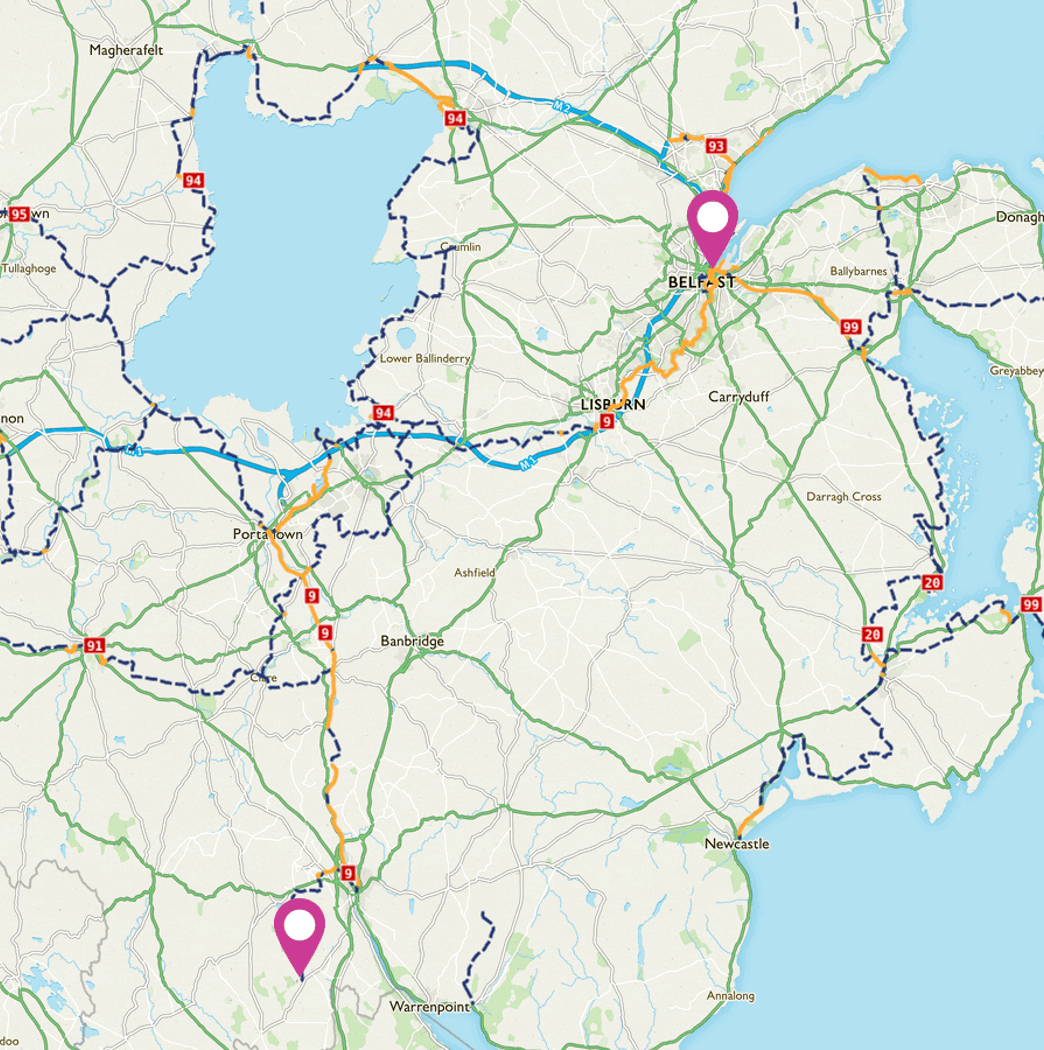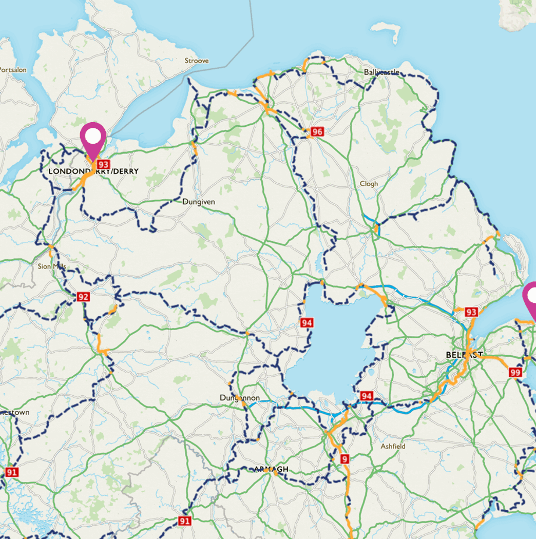Keep an eye out for the hexagon on our route pages. This symbol means that some or all of the route is not on the Network.