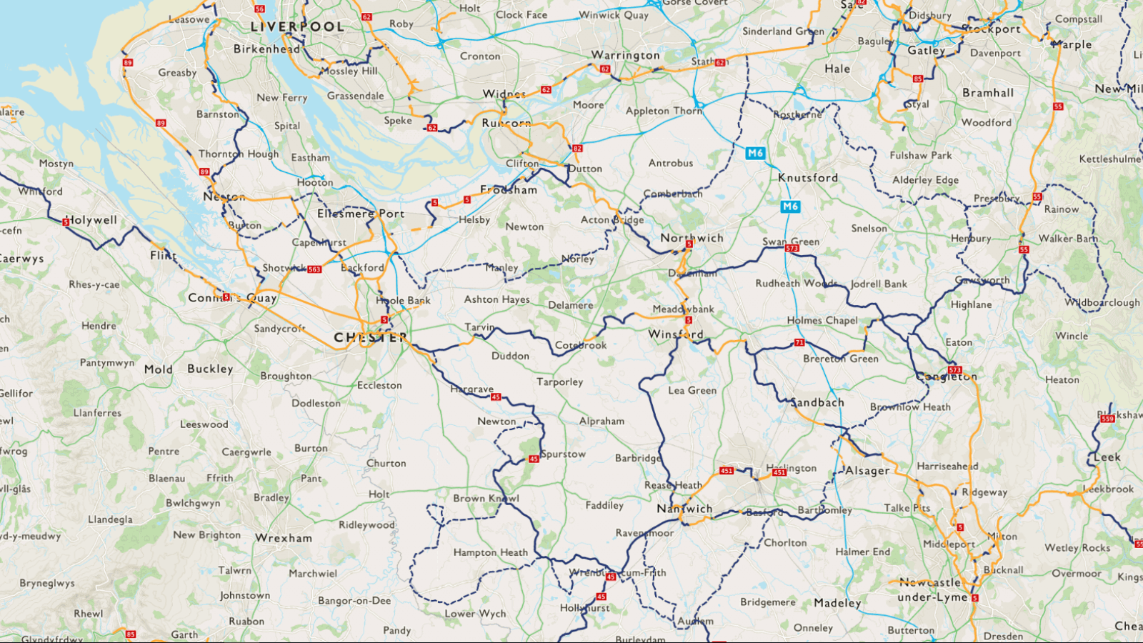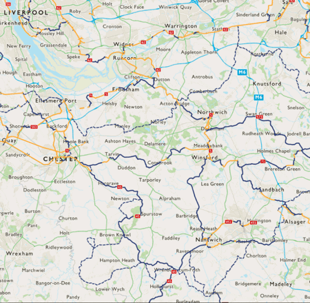 The Cheshire Cycleway is mainly on-road, coursing largely on country lanes.