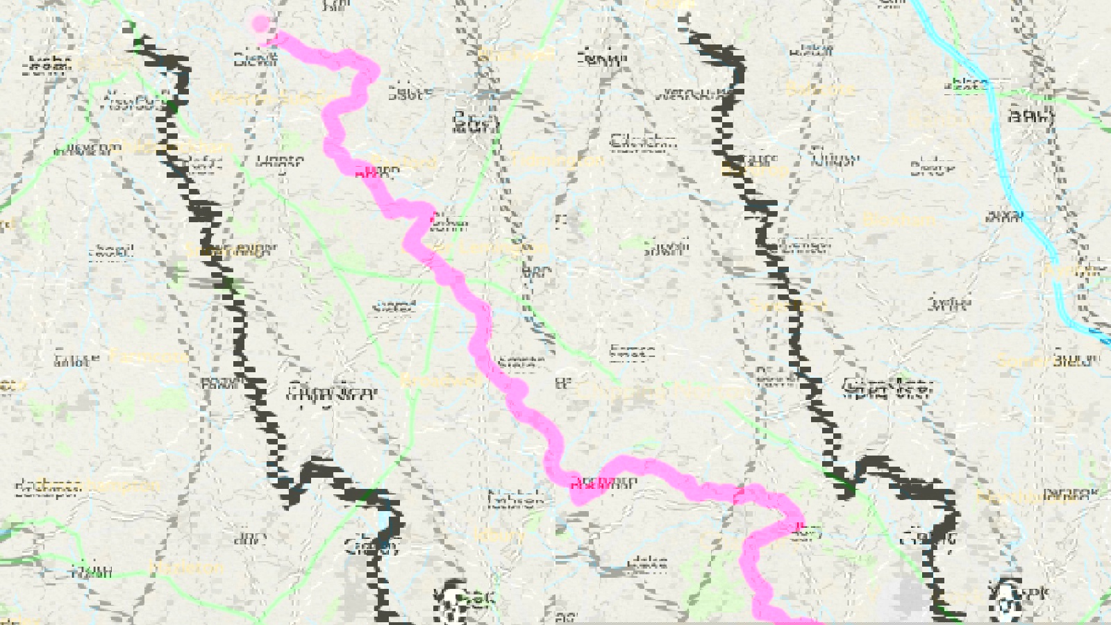 Westbound, it uses a very quiet and picturesque lane on the north side of the valley through Fawler.
