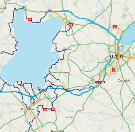 There is an option to continue north from Toome to Portglenone to take in the smaller Lough Beg.