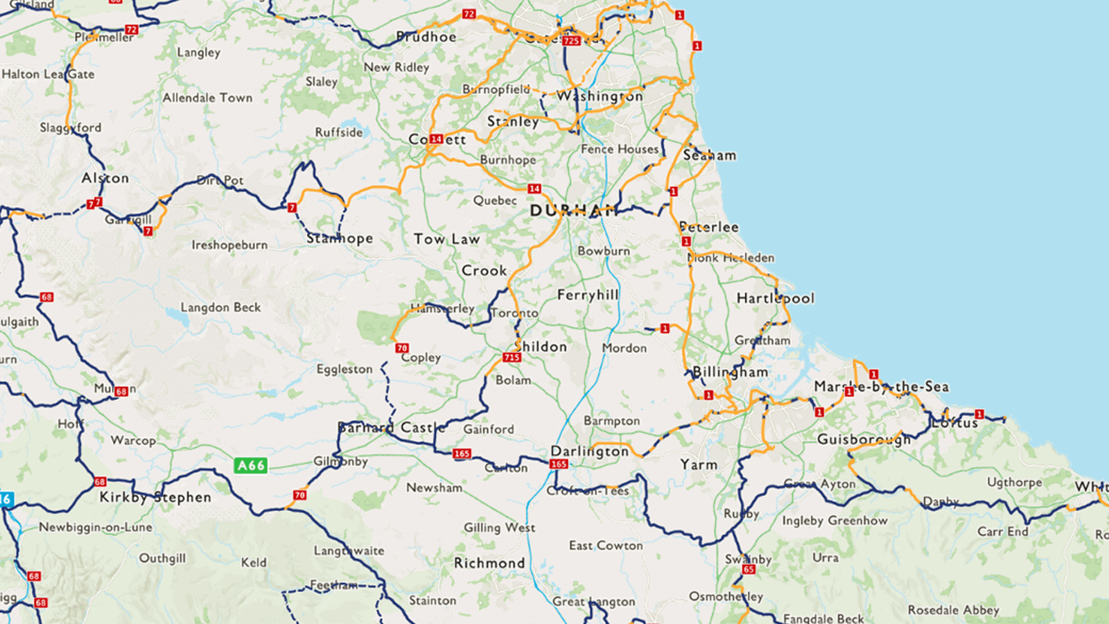 Numbered as National Route 14, blue signposts will guide you along its snaking 80 miles (129km) between Middlesbrough and South Shields.