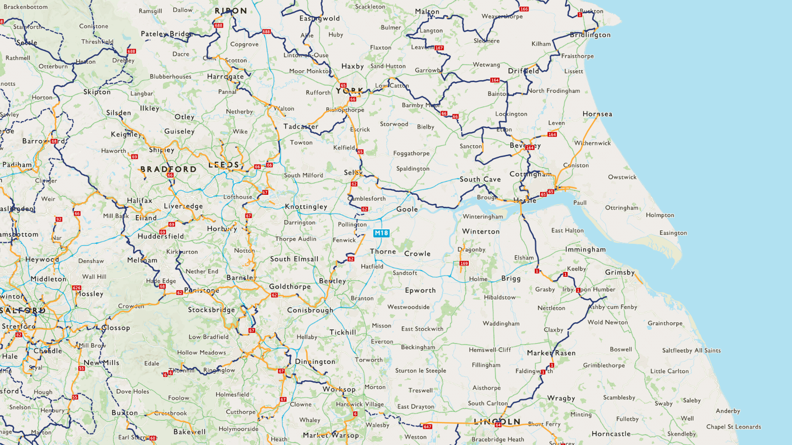 The main route heads eastwards near to the Rivers Ouse and Humber. The route arrives in Kingston upon Hull and takes you right up to King George Dock, which is rich in maritime history.