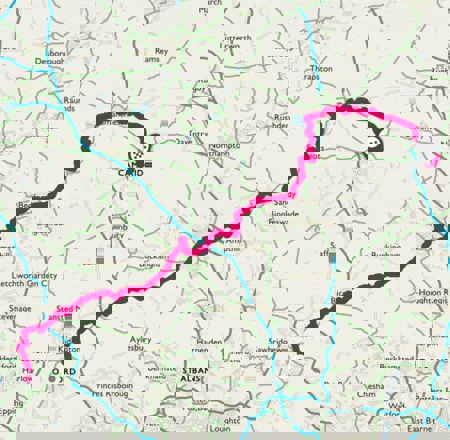 Follow National Route 12 north towards Huntingdon - be careful on the bridleway between St Neots and Grafham Water as there are some uneven sections.