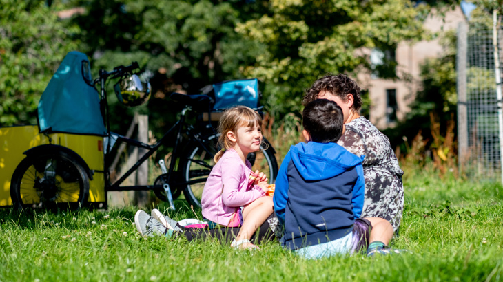 Hazel and her kids are enjoying a day out in Scotland on their cargo bike.