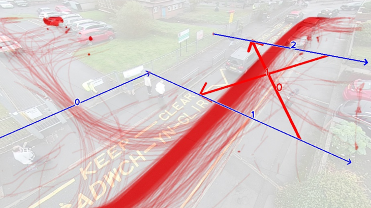 Vehicle movement patterns outside of Fairfield Primary School in Penarth. Credit: Street Systems