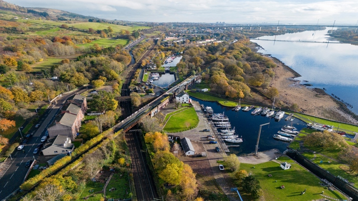 Completed in late 2022, the new bridge provides a quick and convenient off-road walking, wheeling and cycling link via the Forth and Clyde Canal network.