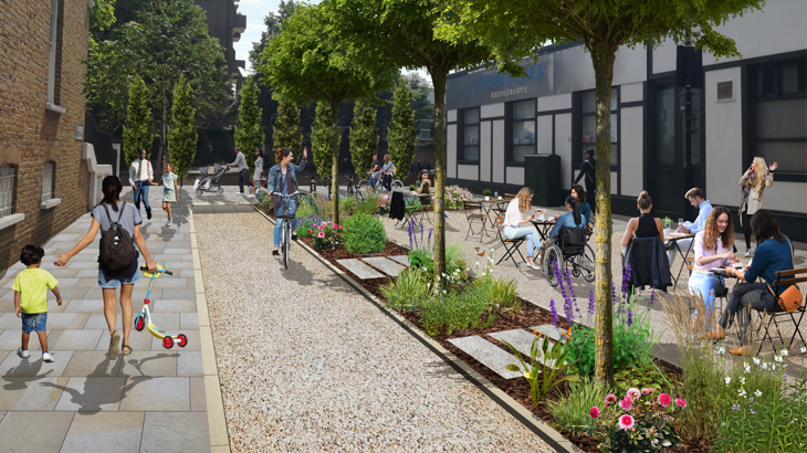 The London Borough of Lambeth commissioned us to transform five temporary low traffic neighbourhoods into permanent, beautiful public spaces. Our proposed designs move away from just installing planters and barriers to restrain traffic and instead focus on adding social value by transforming streets into public spaces where people can stay, talk and build a community.