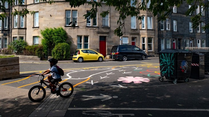 Reallocated space in Leith is helping reduce emissions, and improve safety and public health. Credit: Michael Kelly.